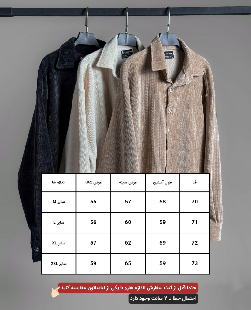 قبل از سفارش حتما حتما به جدول راهنمای اندازه دقت کنید ( تعویض بخاطر سایز انجام نمیشود )