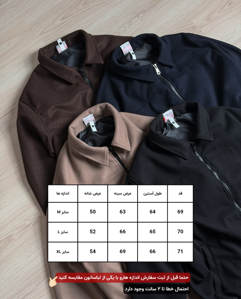 دقت فرمایید اختلاف سایزی بین 2 الی 3 سانت در راهنمای اندازه گیری طبیعی بوده و جز اشکال در اندازه گیری محسوب نمیشود.