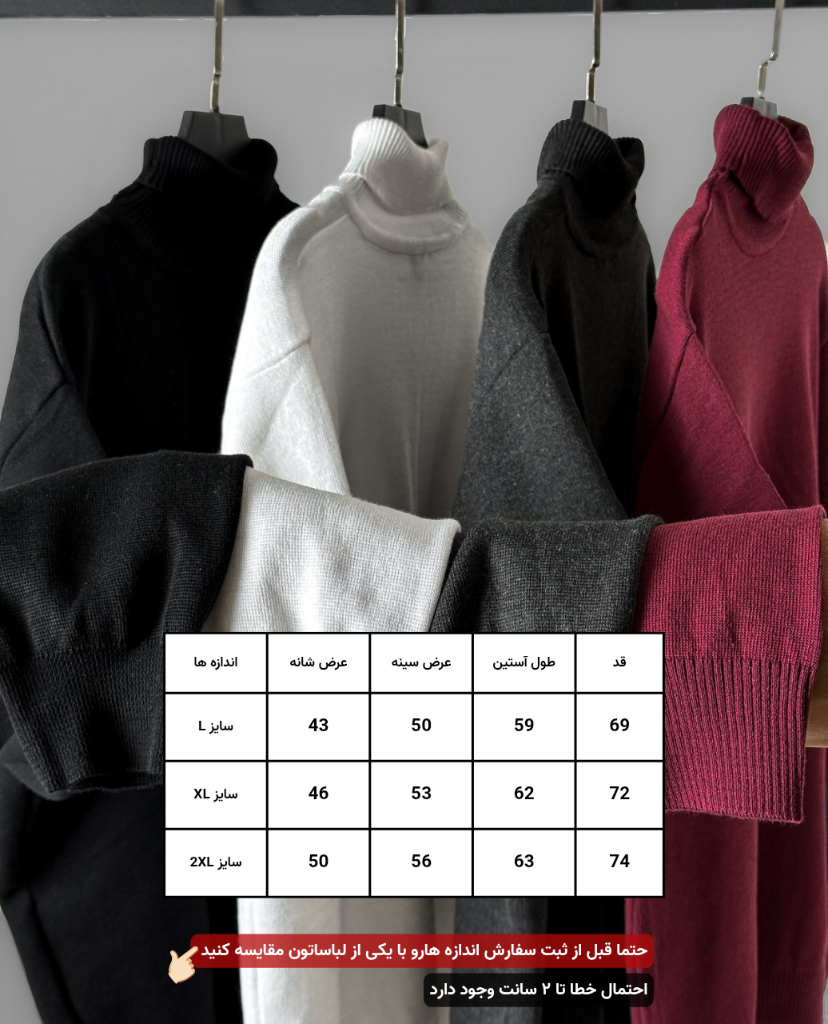 دقت فرمایید اختلاف سایزی بین 2 الی 3 سانت در راهنمای اندازه گیری طبیعی بوده و جز اشکال در اندازه گیری محسوب نمیشود.